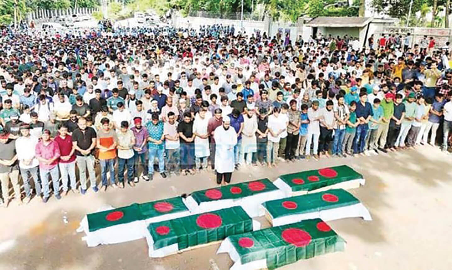 ১৬ জুলাই আন্দোলনরত শিক্ষার্থীদের ওপর ছাত্রলীগ ও পুলিশের হামলায় রংপুরে বেরোবির শিক্ষার্থী আবু সাঈদসহ সারাদেশে অন্তত ছয়জন নিহত হন। তাদের মধ্যে দুজন ঢাকায় সায়েন্সল্যাব এলাকায় এবং চট্টগ্রামে ছাত্রদলনেতা ওয়াসিম আকরামসহ আরও তিন জন নিহত হন। নিহতদের মাগফেরাত কামনায় ১৭ জুলাই ঢাবির রাজু ভাস্কর্যের পাদদেশে গায়েবানা জানাজার আয়োজন করে বৈষম্যবিরোধী ছাত্র আন্দোলন। গায়েবানা জানাজার শুরু হওয়ার আগেই পুলিশ টিয়ার গ্যাস ও সাউন্ড গ্রেনেড নিক্ষেপ করে শিক্ষার্থীদের ছত্রভঙ্গ করে দেয়। পরে বিকেল চারটার দিকে ঢাবি উপাচার্য বাসভবনের সামনে জানাজা পড়েন আন্দোলনকারীরা। জানাজা শেষে শিক্ষার্থীরা প্রতীকী কফিন ধরে শপথ করেন এবং সমস্বরে বলেন, ‘এই আন্দোলন আমরা বৃথা যেতে দেব না। দাবি আদায় না হওয়া পর্যন্ত আমরা এই আন্দোলন থেকে সরে যাব না।’