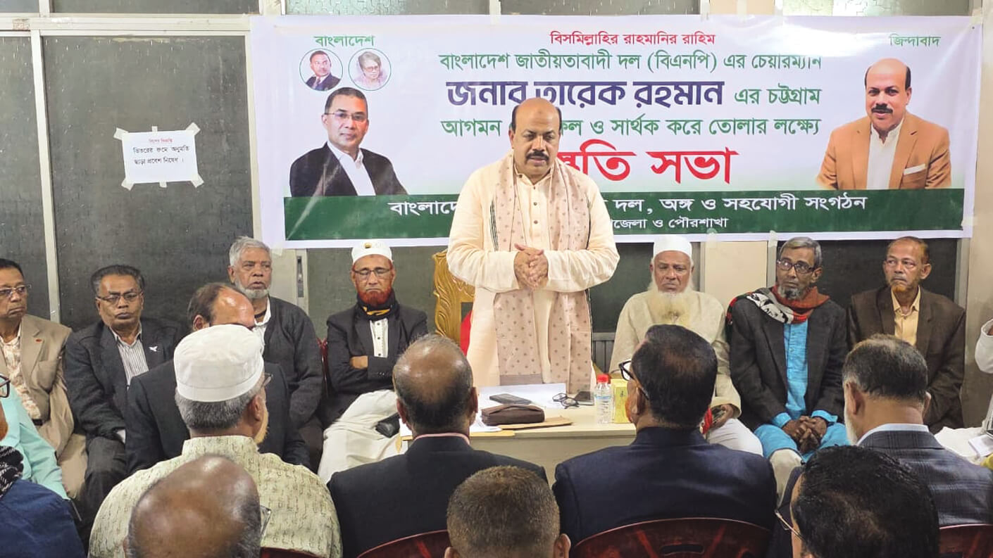 গত মঙ্গলবার নাসিমন ভবন দলীয় কার্যালয় মাঠে চট্টগ্রাম–৯ আসনের আওতাধীন থানা ও ওয়ার্ডসমূহের বিএনপি, অঙ্গ ও সহযোগী সংগঠনের প্রস্তুতি সভায় প্রধান অতিথির বক্তব্যে তিনি এ কথা বলেন। সভাপতির বক্তব্যে চট্টগ্রাম–৯ আসনে নির্বাচন পরিচালনা কমিটির কোঅর্ডিনেটর আবুল হাশেম বক্কর বলেন, তারেক রহমান বিগত ১৭ বছর শত জুলুম–নির্যাতন উপেক্ষা করে জাতিকে ঐক্যবদ্ধ করে গণতন্ত্র পুনঃরুদ্ধার আন্দোলনে নেতৃত্ব দিয়েছেন। আগামী ২৫ জানুয়ারি পলোগ্রাউন্ডের মাঠ লোকে লোকারণ্যে হবে।