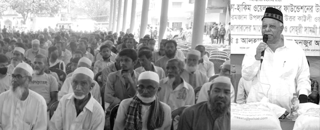চাল, চিনি, ছোলা, চিড়া, সেমাই, তেল, চাপাতা ইত্যাদি মিলে জনপ্রতি ১৫ কেজি ইফতার ও সেহেরি সামগ্রী নগরীর ৪১নং ওয়ার্ড, মাইজভাণ্ডার দরবার ও মোহছেন আউলিয়া দরবার এলাকার আশেকান ভক্ত, বস্তিবাসী, ভিক্ষুক, প্রতিবন্ধী, অস্বচ্ছল আত্মীয়–স্বজন, অফিস, গার্মেন্টস কর্মীসহ কলকারখানার ৪র্থ শ্রেণির কর্মচারী মিলে প্রায় ৪০ হাজার রোজাদার পরিবারের মাঝে ইফতার ও সেহেরি সামগ্রী বিতরণ করেছেন সাবেক মেয়র মোহাম্মদ মনজুর আলম। মোস্তফা হাকিম ওয়েলফেয়ার ফাউন্ডেশন ও হোছনে আরা মনজুর ওয়েলফেয়ার ট্রাস্টের উদ্যোগে পবিত্র রমজানের প্রথম দিন থেকে ১০ রমজানের মধ্যে এ সকল সামগ্রী বিতরণ করা হয়। ফাউন্ডেশন ও ট্রাস্টের প্রতিষ্ঠাতা সাবেক মেয়র মোহাম্মদ মনজুর আলম ও তাঁর পুত্র ট্রাস্টের পরিচালক মোহাম্মদ সরোয়ার আলম ও সাইফুল আলম এসব সামগ্রী রোজাদারদের হাতে তুলে দেন। গতকাল মঙ্গলবার বস্তিবাসীদের মাঝে ইফতার ও সেহেরি সামগ্রী বিতরণের মধ্য দিয়ে এ কর্মসূচির সমাপ্ত টানা হয়। সমাপ্তি দিবসে মোস্তফা–হাকিম ওয়েলফেয়ার ফাউন্ডেশন ও হোছনে আরা মনজুর ওয়েলফেয়ার ট্রাস্টের পরিচালক নিজামুল আলম, সরোয়ার আলম, ফারুক আজম, সাইফুল আলম, সাহিদুল আলমসহ বাদশা আলম, নেছার আহমদ ও অন্যরা উপস্থিত ছিলেন। ইফতার বিতরণের শুরুতে মোনাজাত পরিচালনা করেন হযরত তৈয়ব শাহ (রা.) জামে মসজিদের ইমাম মাওলানা আবদুল মান্নান। রোজাদারদের মাঝে ইফতারি বিতরণের সমাপ্তি টেনে সাবেক মেয়র মোহাম্মদ মনজুর আলম বলেন, আল্লাহর সন্তুষ্টি ও গরীবের হক আদায় করাই আমাদের লক্ষ্য। প্রেস বিজ্ঞপ্তি।