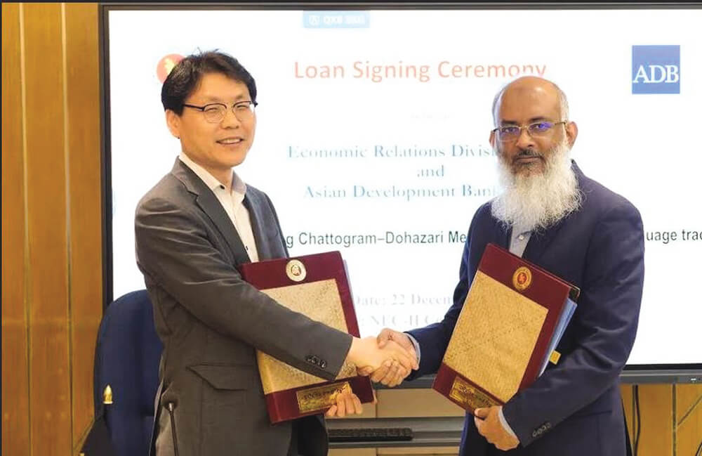 চট্টগ্রাম থেকে দোহাজারী পর্যন্ত ৩৫ কিলোমিটার রেললাইন উন্নয়ন ও নির্মাণে বাংলাদেশ সরকার ও এশীয় উন্নয়ন ব্যাংকের (এডিবি) মধ্যে গতকাল ৬৮৮ মিলিয়ন মার্কিন ডলারের ঋণচুক্তি স্বাক্ষরিত হয়েছে। ঢাকায় অর্থনৈতিক সম্পর্ক বিভাগের (ইআরডি) কার্যালয়ে আয়োজিত এক অনুষ্ঠানে ইআরডি সচিব মো. শাহরিয়ার কাদের সিদ্দিকী এবং বাংলাদেশে এডিবির কান্ট্রি ডিরেক্টর হো ইউন জং নিজ নিজ পক্ষে চুক্তিতে স্বাক্ষর করেন। খবর বাসসের।