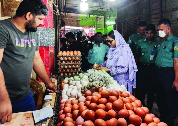 নাসরিন আকতার সাংবাদিকদের জানান, পাইকারি ও খুচরা বাজারে অভিযান পরিচালনা করা হয়। অভিযানে মূল্য তালিকা যথাযথ সংরক্ষণ না করা, সরকার নির্ধারিত দামের চেয়ে বেশি দামে ডিম বিক্রির কারণে জরিমানা করা হয়েছে।