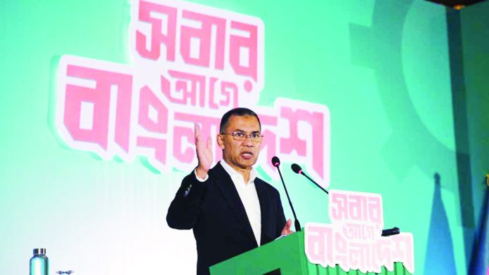 রাষ্ট্র পরিচালনার মূল দর্শন হিসেবে ‘সবার আগে বাংলাদেশ’ প্রতিপাদ্যকে সামনে রেখে আসন্ন জাতীয় সংসদ নির্বাচনের ইশতেহার ঘোষণা করেছে বিএনপি। মহান আল্লাহর প্রতি পূর্ণ আস্থা ও বিশ্বাসের ভিত্তিতে একটি ইনসাফ–ভিত্তিক, মানবিক ও সমৃদ্ধ বাংলাদেশ গঠনে দলটি সুদৃঢ় অঙ্গীকার ব্যক্ত করেছে।