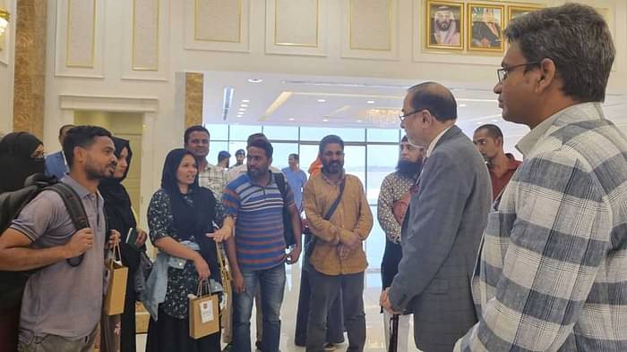এদিকে, সৌদি আরবে বাংলাদেশ দূতাবাস জানিয়েছে, দুপুরে জেদ্দা বিমানবন্দরে পৌঁছার পর বাংলাদেশীদের স্বাগত জানান সৌদি আরবে বাংলাদেশের রাষ্ট্রদূত মোহাম্মদ জাবেদ পাটোয়ারী।