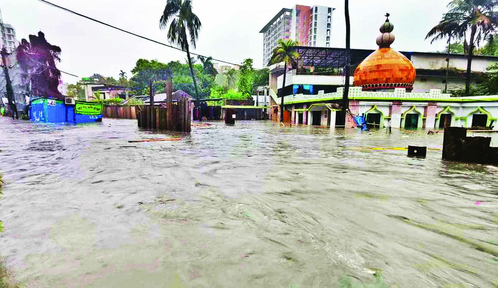 নগরের জলাবদ্ধতা নিরসনে ১৪ হাজার ২৭৭ কোটি টাকায় তিন সংস্থার চারটি প্রকল্পের কাজ চলছে। এর মধ্যে একটি মেগা প্রকল্পসহ তিনটি প্রকল্পের কাজ প্রায় শেষের পথে। এরপরও জলাবদ্ধতার দুর্ভোগ থেকে মুক্তি মিলেনি নগরবাসীর। সর্বশেষ গতকাল মঙ্গলবার মৌসুমের প্রথম ভারী বৃষ্টিতে ডুবেছে শহর। এদিন পূর্বে জলাবদ্ধতা হয়নি এমন অনেক এলাকায়ও গতকাল জলাবদ্ধতা হয়েছে। নগরের অনেক উঁচু এলাকায়ও জলজট হয়েছে। এছাড়া হাঁটু থেকে কোমর সমান পানিতে তলিয়ে যায় শহরের অনেক এলাকার প্রধান সড়ক থেকে অলিগলি। পানি ঢুকে যায় বাসা–বাড়ি ও দোকানপাটে। এতে সীমাহীন দুর্ভোগ হয়েছে নগরবাসীর। পথচারীদের ভোগান্তি হয়েছে সবচেয়ে বেশি। কারণ জলাবদ্ধতার জন্য গণপরিবহন ও অন্যান্য মোটরযানের সংখ্যা সড়কে কম চলে। ফলে কোমর সমান পানিতে হেঁটেই গন্তব্যে যেতে হয় পথচারীদের। এছাড়া অনেক জায়গায় পানিতে আটকা পড়ে যানবাহন। এতে সড়ক থেকে ফ্লাইওভারে সৃষ্টি হয় তীব্র যানজট। এর আগে গত সোমবারও হালকা বৃষ্টিতে নগরের কয়েক জায়গায় জলাবদ্ধতা হয়েছে। গতকাল তা আরো ব্যাপক আকার ধারণ করে। অর্থাৎ গত দুদিন ধরে জলাবদ্ধতার দুর্ভোগ পোহাচ্ছেন নগরবাসী। এ অবস্থায় সাধারণ মানুষ প্রশ্ন তুলেছেন, জলাবদ্ধতা নিরসনে হাজার হাজার কোটি টাকা খরচ করার পরও সুফল নেই কেন? নগরবাসী বলছেন, সরকার আসে, সরকার যায়। কিন্তু জলাবদ্ধতার দুর্ভোগ থেকে তাদের মুক্তি মিলছে না। অনেকে আগের বছরগুলোর তুলনায় গত বছর (২০২৫) জলাবদ্ধতা কম হয়েছে জানিয়ে এবার ঋতুচক্রে বর্ষা আসার আগেই জলাবদ্ধতা হওয়ায় সংশ্লিষ্ট সংস্থাগুলোর প্রতি ক্ষোভ প্রকাশ করেছেন।