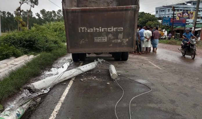 প্রত্যক্ষদর্শীরা জানান, ঘটনাস্থলে চট্টগ্রামমুখী একটি বেপরোয়া গতির ট্রাক বৈদ্যুতিক খুঁটিতে ধাক্কা দিয়ে সামনের দিকে চলতে থাকে। এতে মহাসড়কের উভয় পাশের ৩টি খুঁটি ও বিদ্যুৎ সঞ্চালন লাইনের তার ক্ষতিগ্রস্ত হয়। খুঁটিসহ ট্রাকটি সামনের দিকে যেতে থাকলে আশপাশের লোকজন চিৎকার করে উঠে। তারপর চালক ট্রাকটি থামান। এ সময় বৈদ্যুতিক খুঁটি ভেঙে তারসহ ট্রাকটি চলে যাওয়ার বিষয়টি খেয়াল করেননি বলে স্থানীয়দের জানান চালক। দুর্ঘটনায় কেউ হতাহত হয়নি।