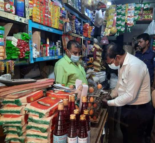 নির্বাহী ম্যাজিস্ট্রেট রাজীব চৌধুরী বলেন, “মোড়কে লেখা মূল্যের চেয়ে বেশি দামে পণ্য বিক্রি করা ও মূল্য তালিকা না থাকায় বাজারের ব্যবসায়ী মো. রাসেল, আহম্মদ হোসেন, শহীদুল ইসলাম, অলি আহমদ, মো. মোস্তফা ও মো. ইউসুফকে দুই হাজার টাকা করে ও মো. আশরাফকে এক হাজার টাকা জরিমানা করা হয়। পুরো রোজার সময় ভ্রাম্যমাণ আদালতের অভিযান চলবে।”